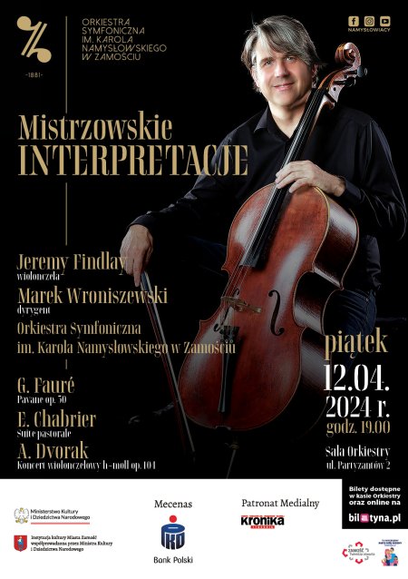 Dołącz do wyjątkowego wieczoru muzycznego, gdzie światła reflektorów oświetlą wyjątkowy talent wiolonczelisty Jeremy’a Findlay’a oraz niesamowitą Orkiestrę Symfoniczną im. Karola Namysłowskiego w Zamościu, którą poprowadzi Maestro Marek Wroniszewski.