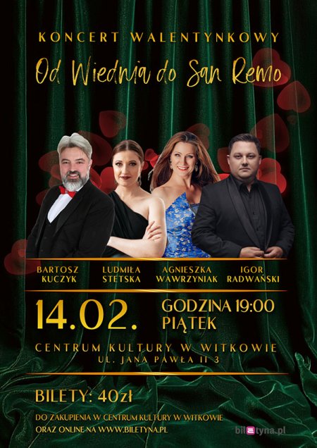 „Koncert „Od Wiednia do San Remo” to niezwykle romantyczna podróż muzyczna, podczas której publiczność usłyszy niezapomniane utwory znanych kompozytorów, takich jak Johann Strauss, Franz Lehár, Emmerich Kálmán czy Robert Stolz. W programie znajdą się najpiękniejsze arie i duety z uwielbianych operetek, które od lat zachwycają słuchaczy na całym świecie.