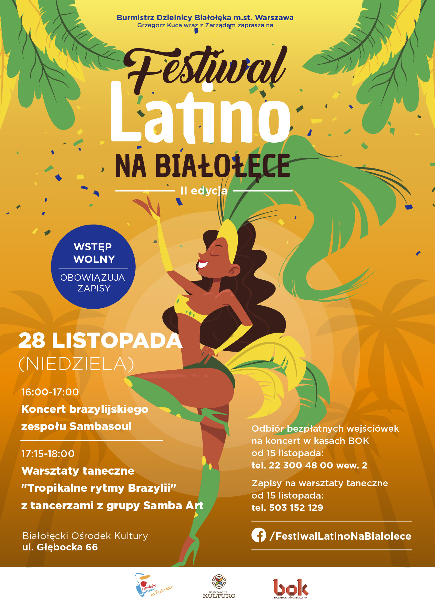 28 listopada (niedziela) na sali widowiskowej przy G66 odbędzie się Festiwal Latino na Białołęce - II edycja. Jest to wydarzenie WKU realizowane przez Fundację Kulturo.