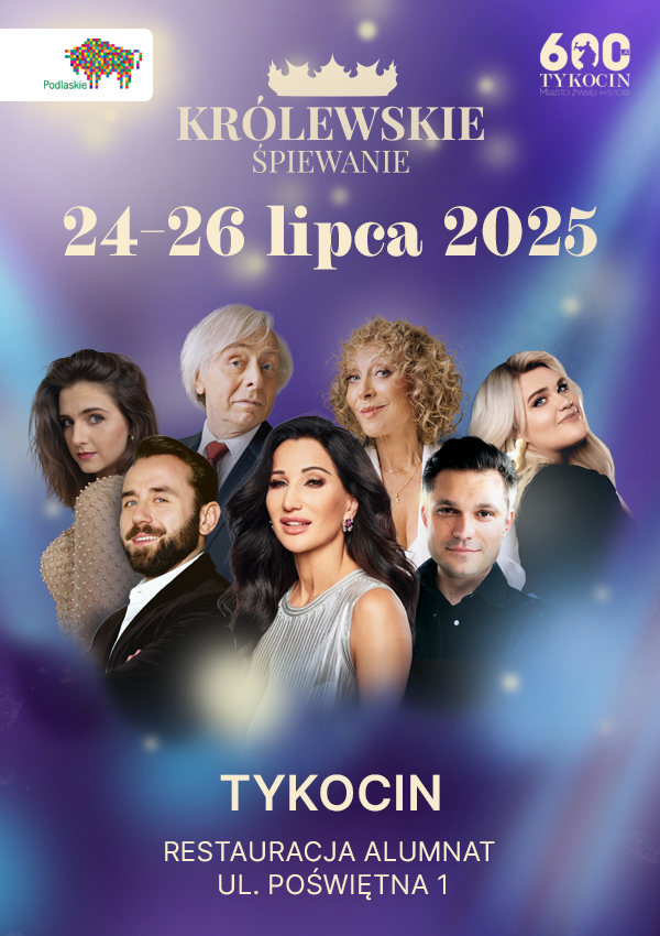 Zapraszamy na trzynastą edycję Królewskiego Śpiewania w Tykocinie, która co roku staje się integralną częścią kulturalnego krajobrazu Podlasia i Polski! To wyjątkowe wydarzenie, będące świadectwem nieustannej pasji i innowacji, ponownie otworzy przed Państwem świat muzyki w sercu Tykocina. Przygotujcie się na niezapomniane wieczory pełne dźwięków i emocji!