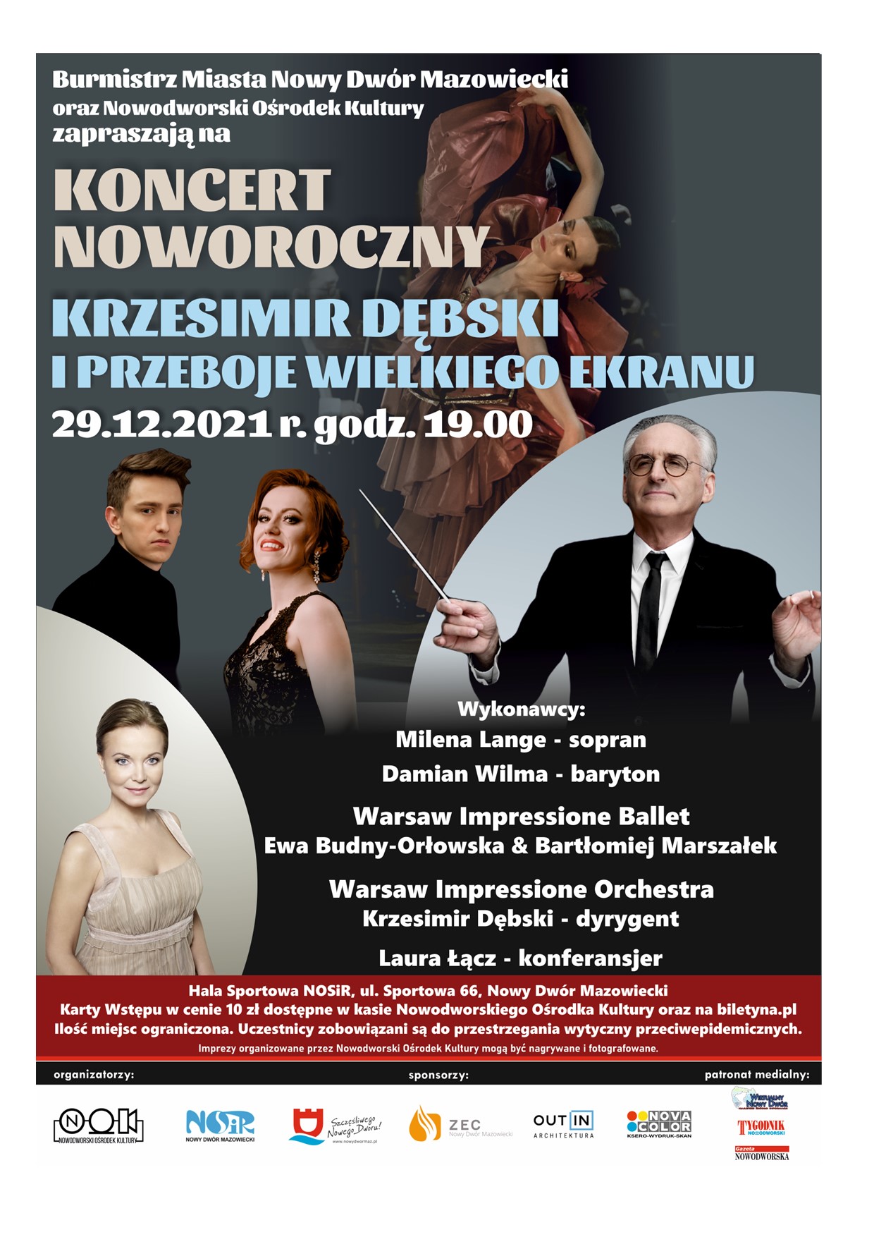 Burmistrz Miasta Nowy Dwór Mazowiecki oraz Nowodworski Ośrodek Kultury zapraszają na Koncert Noworoczny "Krzesimir Dębski i Przeboje Wielkiego Ekranu".