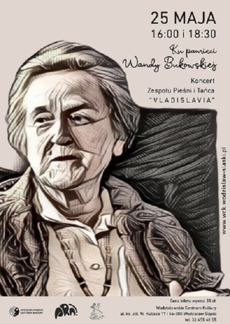 Wodzisławskie Centrum Kultury Kultury oraz Zespół Pieśni i Tańca „Vladislavia” z dumą i sercem pełnym wdzięczności zaprasza na wyjątkowy koncert poświęcony pamięci Pani Wandy Bukowskiej - założycielki, nauczycielki, przewodniczki i opiekunki ducha. To szczególne wydarzenie odbędzie się 25 maja, w niedzielę o godz. 16:00 i 18:30.