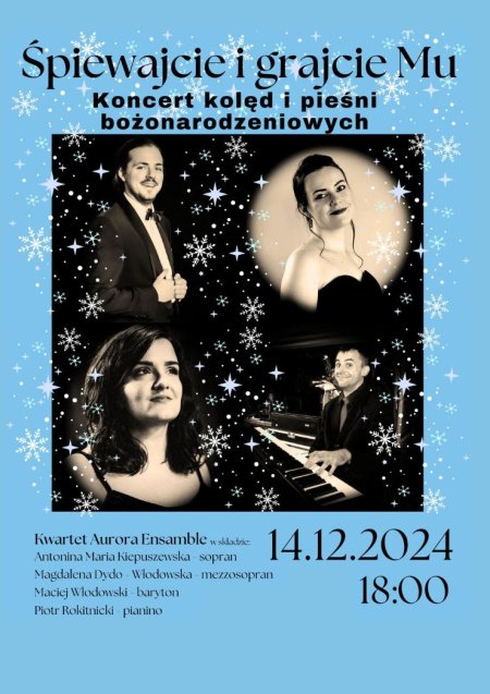 Serdecznie zapraszamy na koncert "Śpiewajcie i grajcie Mu" w wykonaniu Kwartetu Aurora Ensamble w składzie: