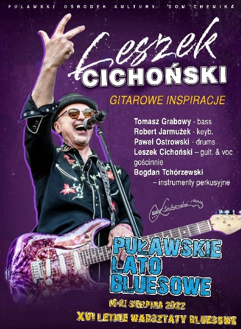 Leszek Cichoński – ceniony polski gitarzysta (najlepszy polski gitarzysta bluesowy wg plebiscytu Guitar Award 2014), kompozytor, autor podręczników i kursów dla gitarzystów. W programie koncertu „Gitarowe Inspiracje” usłyszymy autorskie wersje standardów bluesowo-rockowych jak i jazzowych, utworów B.B. Kinga, Robbena Forda, Jimiego Hendrixa i Tadeusza Nalepy, a także kompozycje z płyty "Sobą gram".