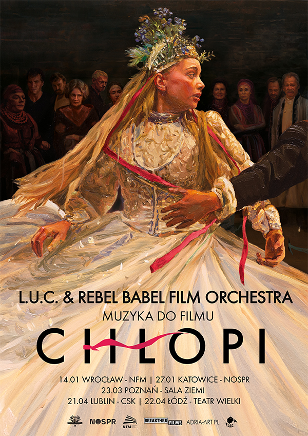 „Chłopi” to najnowszy film DK Welchman i Hugh Welchmana, twórców „Twojego Vincenta”, który został polskim kandydata do Oscara w kategorii najlepszy film zagraniczny. Łukasz „L.U.C.” Rostkowski, zdobywca wielu nagród i uznania zarówno w kraju, jak i za granicą, jest odpowiedzialny za stworzenie ścieżki dźwiękowej do filmu. Teraz razem z Rebel Babel Film Orchestra zaprasza na koncerty projektu „Chłopi”.