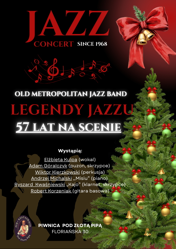 ✨𝐎𝐥𝐝 𝐌𝐞𝐭𝐫𝐨𝐩𝐨𝐥𝐢𝐭𝐚𝐧 𝐁𝐚𝐧𝐝, najstarszy krakowski zespół jazzowy, zabierze Cię w fascynującą podróż przez świat klasycznego jazzu. Przygotuj się na rytmiczne brzmienia, pełne pasji improwizacje oraz niezwykły wokal, które na długo zapadną w pamięć.