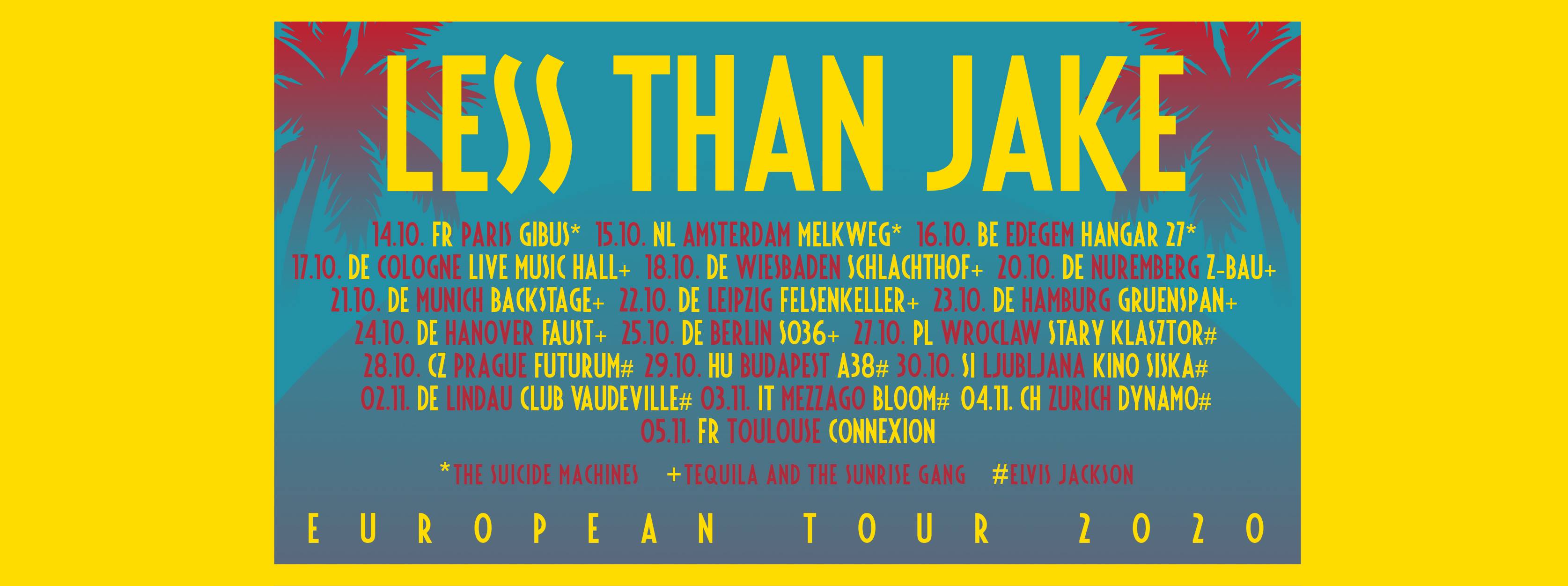 LESS THAN JAKE to aktualnie jeden z najpopularniejszych amerykańskich zespołów ska punk w U.S.A.Grupa powstała w w Gainesville na Florydzie w 1992 roku z inicjatywy perkusisty Vinnie Fiorello i wokalisty/gitarzysty Chris'a DeMakes'a. Wkrótce dołączył do nich wokalista/basista Roger Lima I trębacz Buddy Schaub. W tym składzie zespół wyruszył na swoje pierwsze tournée i koncertuje do dzisiaj bez przerwy grając co roku po 150 koncertów podczas których mieli okazję występować u boku Bon Jovi, Linkin Park czy Snoop Dogga. W 2000 roku dołączył do nich saksofonista J.R. Wasilewski Dotychczas wydali osiem albumów i sprzedali ponad 2 miliony płyt na całym świecie.