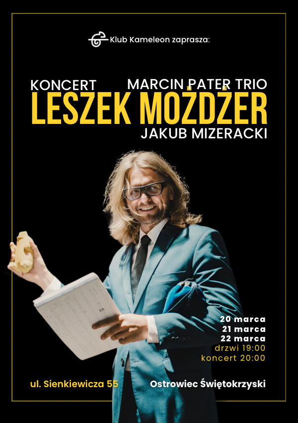 🎶 Leszek Możdżer, Marcin Pater Trio i Jakub Mizeracki stworzą magiczną muzyczną opowieść, gdzie jazz spotyka nowoczesne brzmienia. Nie przegap mistrzowskiej improwizacji i unikalnej energii! 🎟️ Zarezerwuj bilet już teraz na tę muzyczną ucztę! 🎹🎸🥁