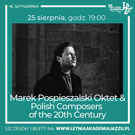Polscy Kompozytorzy XX wieku to wyjątkowy projekt Marka Pospieszalskiego, w który zaangażowani są cenieni muzycy: Marek Pospieszalski (saksofony, klarnety, flet i taśma), Piotr Chęcki (saksofon tenorowy), Tomasz Dąbrowski (trąbka), Tomasz Sroczyński (wiolonczela), Szymon Mika (gitary), Grzegorz Tarwid (fortepian), Max Mucha (kontrabas) oraz Qba Janicki (perkusja i soundboard). Będzie to koncert wieńczący 15. Letnią Akademię Jazzu w Wytwórni.