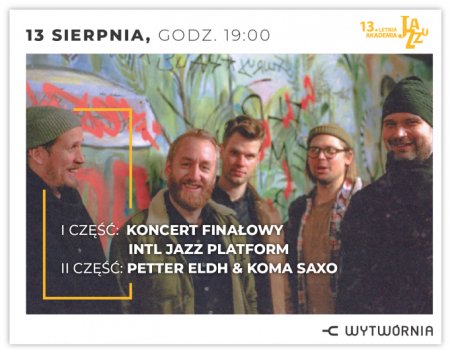 W pierwszej części wieczoru zobaczymy uczestników warsztatów INTL Jazz Platform i ich mistrzów. Druga część wieczoru będzie należeć do kwintetu Koma Saxo, założonego przez wizjonera, szwedzkiego basistę i producenta - Pettera Eldha.