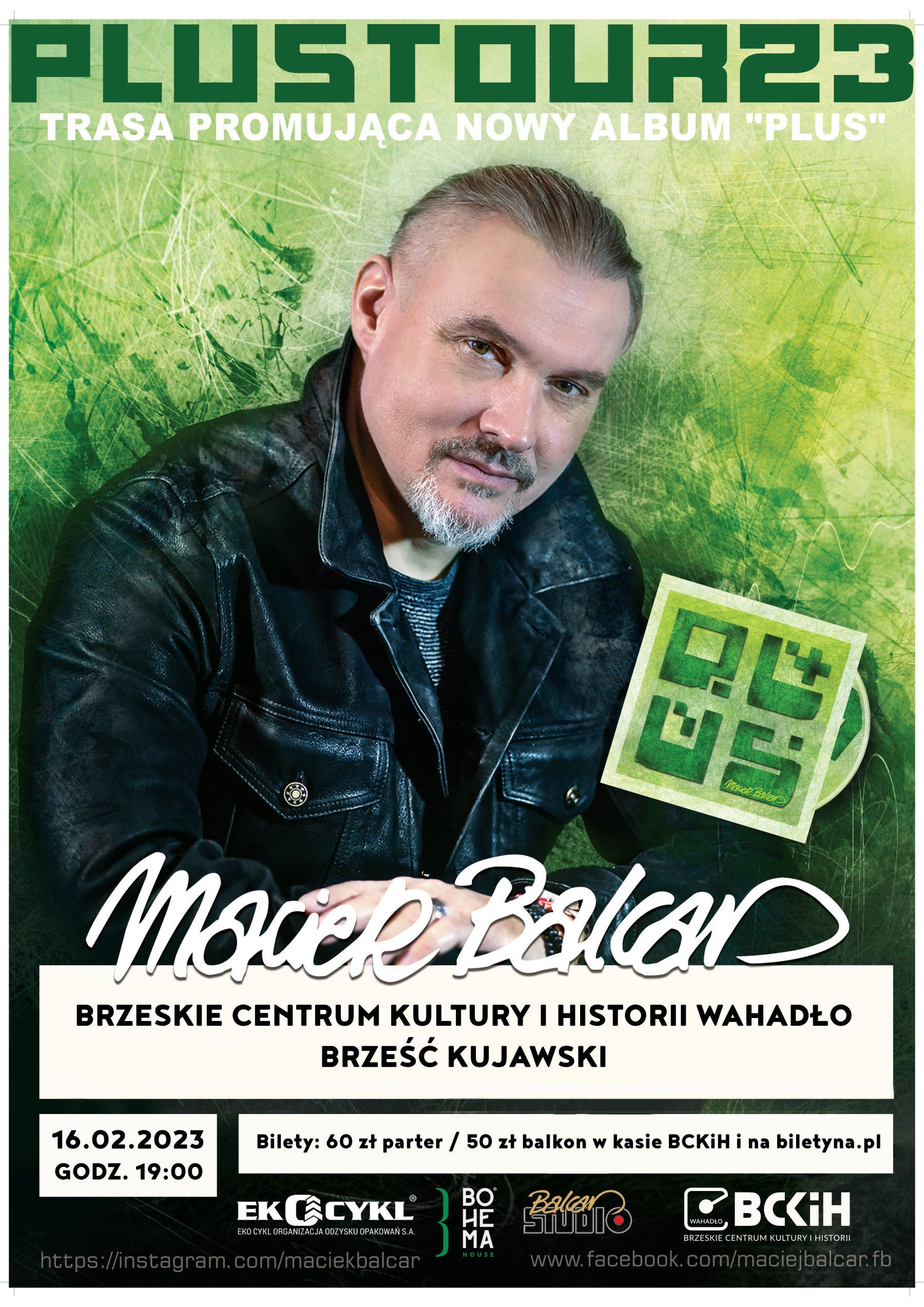 Wielkimi krokami zbliża się kolejny album solowy Macieja Balcara, pt. „PLUS”. To kolejne, siódme już wydawnictwo artysty, który poza głównym nurtem, jakim jest śpiewanie w formacji DŻEM, doskonale i z pasją godną pozazdroszczenia, realizuje się w swoim solowym projekcie. Od lat towarzyszą mu też ci sami nietuzinkowi muzycy, z którymi oprócz nagrywania płyt, raz do roku, podczas ferii zimowych, wyrusza w prawie trzytygodniową, pełną muzycznych przygód trasę koncertową.