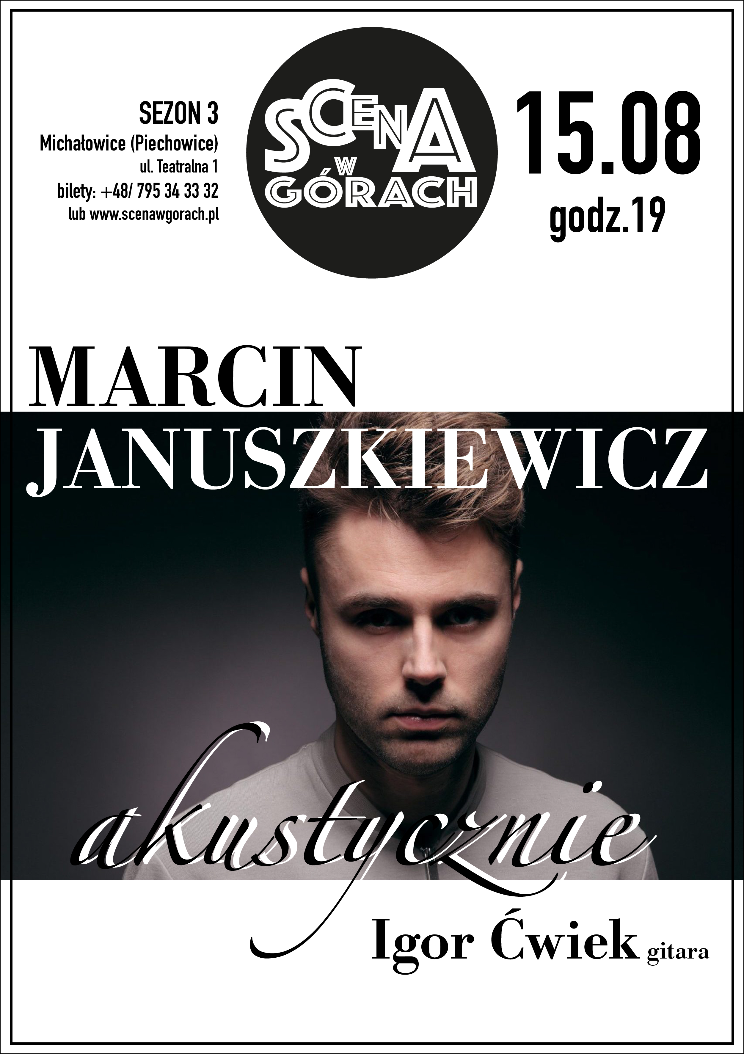 W programie koncertu „Akustycznie” Januszkiewicz zaprezentuje przekrój swoich muzycznych inspiracji – od poezji i popu, po klasycznego rocka. Towarzyszyć mu będzie gitarzysta Igor Ćwiek – współtwórca blues-rockowego zespołu Amnezja, w którym Marcin śpiewa.