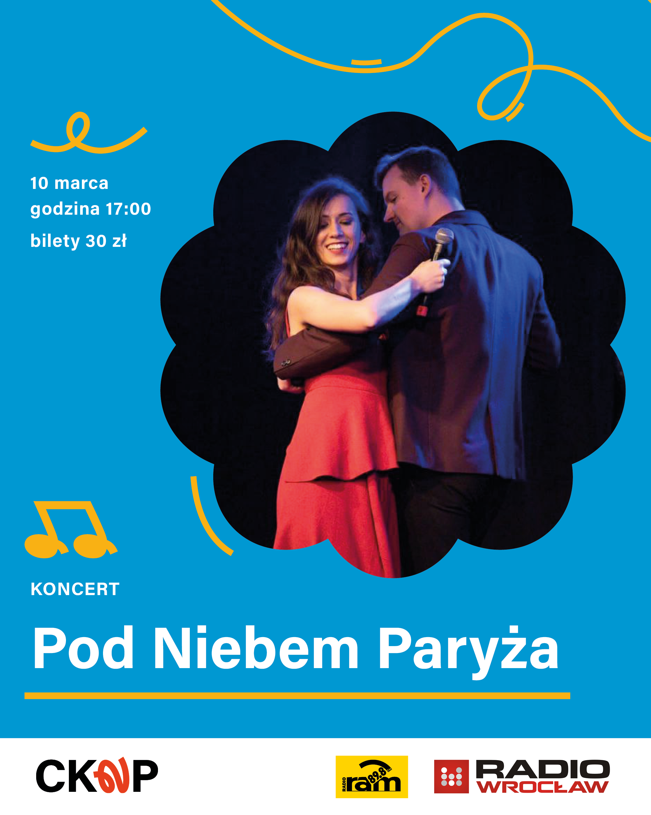 Koncert piosenki francuskiej, podczas którego usłyszymy najsłynniejsze przeboje francuskich artystów takich jak: Edith Piaf, Yves Montand, Charles Aznavour, Mireille Mathieu, Joe Dassin czy Lara Fabian.
