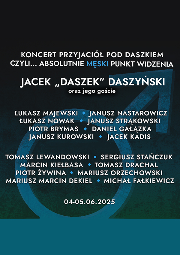 Jacek „Daszek” Daszyński zaprasza serdecznie na dwa wieczory niepowtarzalnej atmosfery, do wysłuchania tego, co w męskich duszach gra, gada i śpiewa!