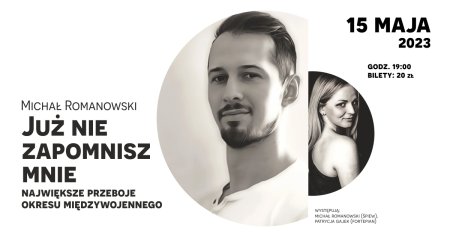 Michał Romanowski "Już nie zapomnisz mnie - największe przeboje okresu międzywojennego" koncert utworów z repertuaru między innymi: Mieczysława Fogga, Eugeniusza Bodo, Aleksandra Żabczyńskiego, Adama Astona, Jana Kiepury