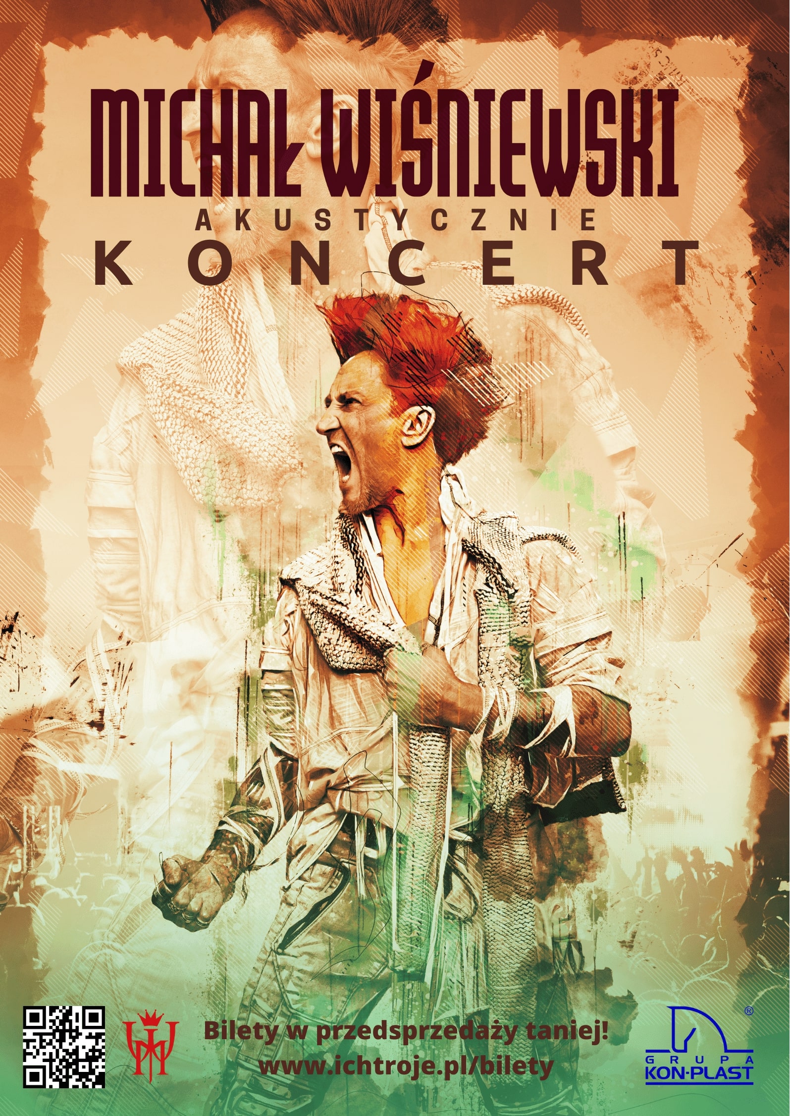 Michał Wiśniewski Akustycznie cz. I - A NIECH GADAJĄ… Pierwsza odsłona akustycznych koncertów Michała Wiśniewskiego. Usłyszymy na nich największe przeboje Michała i zespołu Ich Troje, w wersjach akustycznych, na żywo! Zaczarują nas dźwięki płynące z pianina, basu, gitary oraz instrumentów perkusyjnych... Te koncerty z pewnością pozostaną na długo w pamięci każdemu, kto postanowi udać się na to muzyczne wydarzenie! Podczas koncertów usłyszymy jednak nie tylko samego Michała, ale również Anię Świątczak - wokalistkę zespołu Ich Troje, której wspaniały głos w przepięknych balladach przyprawia widza o wzruszenie. Oprócz największych hitów Michała, takich jak "A wszystko to…" , "Powiedz", "Zawsze z Tobą chciałbym być", "Kochaj mnie Kochaj" czy "Wypijmy za to!", usłyszymy również utwory takie jak "A niech gadają", "Mandy", "Nienawiść" , "Czekanie", "Papierosy, wóda, sex", czy "Zawsze naprzód nigdy wstecz". Zapraszamy serdecznie na 120 minut muzycznej uczty! Artysta przygotował na ten koncert trzy różne rodzaje biletów, a dwa z nich dają Państwu możliwość spotkania z Michałem twarzą w twarz po koncercie!