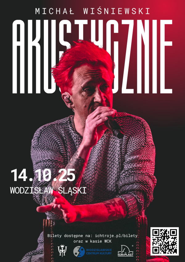 Michał Wiśniewski w nowej akustycznej odsłonie zawita jesienią do Wodzisławskiego Centrum Kultury. Będzie to wyjątkowa okazja by posłuchać największych przebojów Michała i Ich Troje w zupełnie nowej oprawie. Zapraszamy do WCK już 14 października. Bilety w sprzedaży.