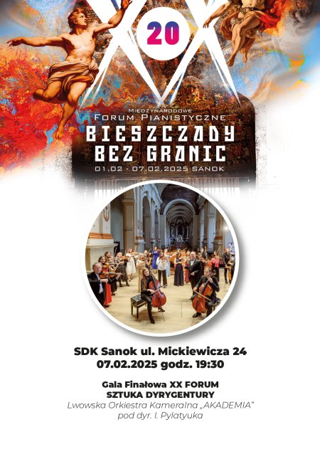 Podkarpacka Fundacja Rozwoju Kultury główny organizator XX Międzynarodowego Forum Pianistycznego „Bieszczady bez granic” zaprasza na wyjątkowe koncerty wieczorne w dniach 1-7.02.2025 w Sanoku. Na przełomie stycznia i lutego Sanok staje się Zimową Stolicą Pianistyki goszcząc każdorazowo do 300 uczestników z kilkunastu krajów Europy. Forum to bogata oferta kulturalna, którą zrozumie amator odkrywający dopiero muzykę klasyczną oraz z rozkoszą przysłucha się jej wytrawny meloman i muzyk. Zróżnicowanie oferty koncertowej ma na celu poszerzenie oferty kulturalnej o wydarzenia, które zachęcą do aktywności szerszą publiczność.