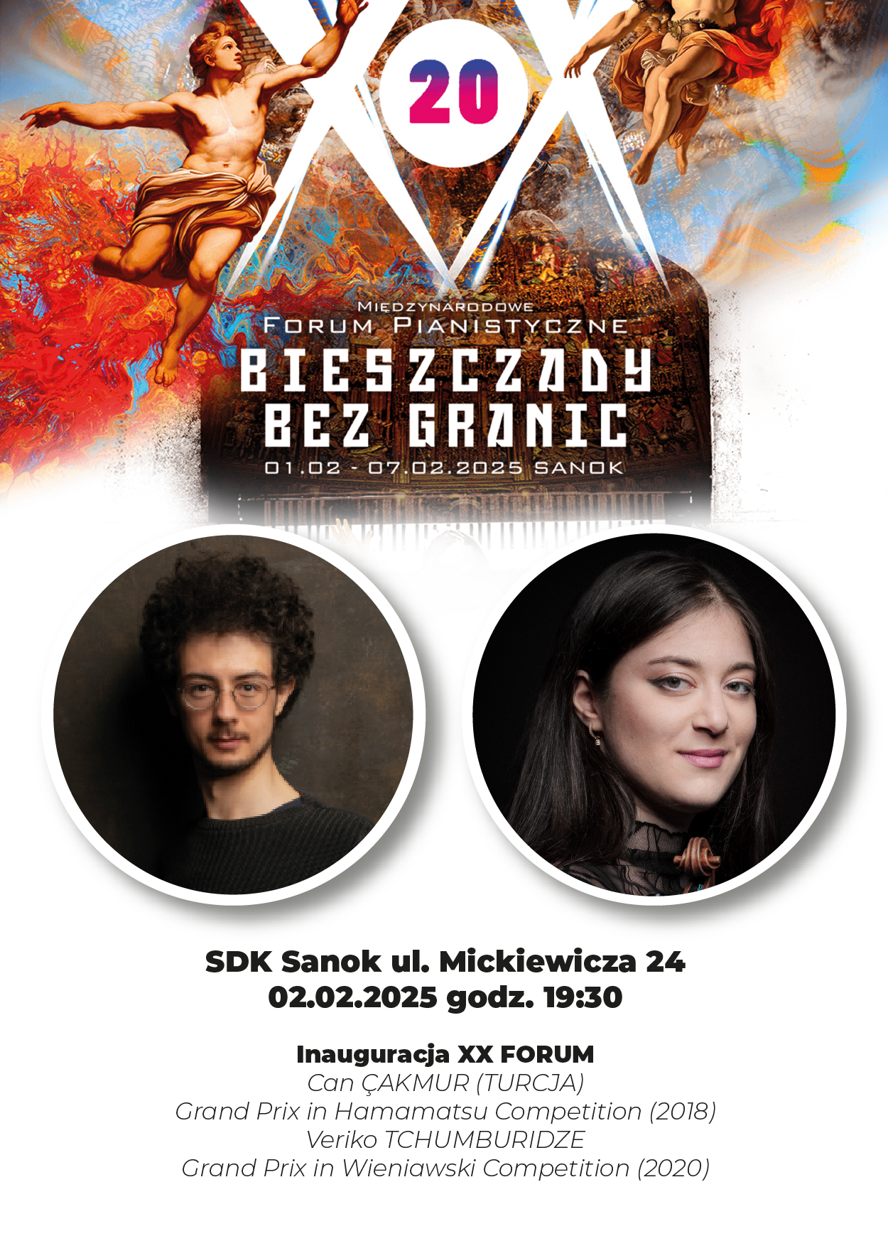 Podkarpacka Fundacja Rozwoju Kultury główny organizator XX Międzynarodowego Forum Pianistycznego „Bieszczady bez granic” zaprasza na wyjątkowe koncerty wieczorne w dniach 1-7.02.2025 w Sanoku. Na przełomie stycznia i lutego Sanok staje się Zimową Stolicą Pianistyki goszcząc każdorazowo do 300 uczestników z kilkunastu krajów Europy. Forum to bogata oferta kulturalna, którą zrozumie amator odkrywający dopiero muzykę klasyczną oraz z rozkoszą przysłucha się jej wytrawny meloman i muzyk. Zróżnicowanie oferty koncertowej ma na celu poszerzenie oferty kulturalnej o wydarzenia, które zachęcą do aktywności szerszą publiczność.