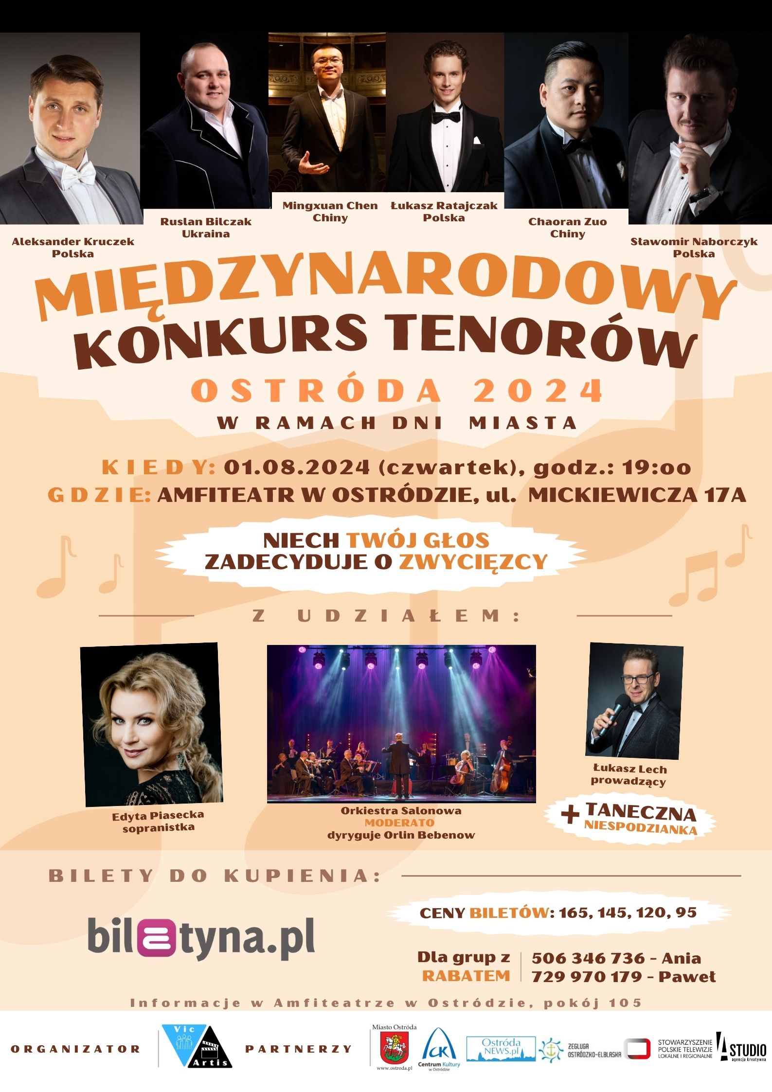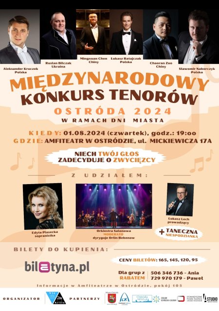 Serdecznie zapraszamy na Międzynarodowy Konkurs Tenorów Ostróda 2024, Amfiteatr, 01.08 (czwartek), godz.19:00.