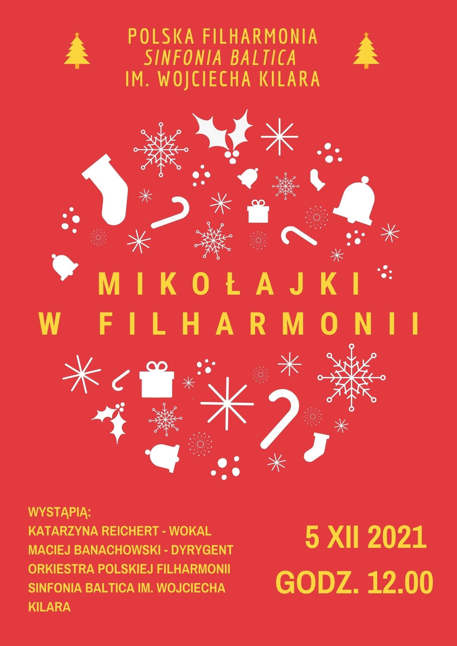 Grudzień to taki czas w roku, kiedy każdy ucieka myślami do świątecznych spotkań z rodziną i wspólnych zimowych wieczorów. Warto wprowadzić się w kolędowy nastrój już na początku miesiąca! 5 grudnia zapraszamy na „Mikołajki w Filharmonii” – koncert, podczas którego będzie można posłuchać najpiękniejszych świątecznych piosenek w wykonaniu niezastąpionej Orkiestry Polskiej Filharmonii Sinfonia Baltica im. Wojciecha Kilara. Oprócz klimatycznych ballad pojawi się wiele znanych, energetycznych przebojów, takich jak „Jingle Bell Rock”, „Santa Claus is coming to town”, „Santa Baby”. Od strony wokalnej zaprezentuje się Aleksandra Cybula oraz premierowo Katarzyna Reichert, a zadyryguje Maciej Banachowski.