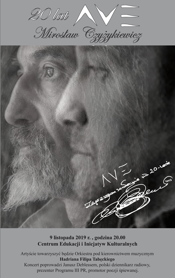 Mamy niezwykłą przyjemność zaprosić Państwa na koncert Jubileuszowy 20 - lecia płyty AVE autorstwa Mirka Czyżykiewicza.