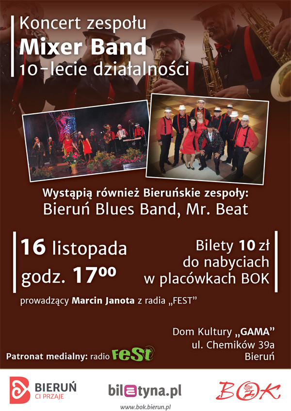 Bieruń Blues Band-wykonujący standardy bluesowe jak również własne kompozycje oraz Mr.Beat - formacja złożona z pasjonatów muzyki lat 60., 70. i 80.