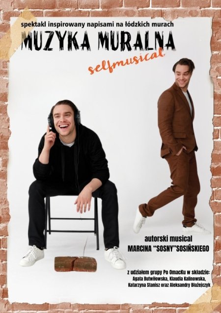 MUZYKA MURALNA czyli autorski spektakl Marcina „Sosny” Sosińskiego, to multi-artystyczna podróż śladami łódzkich murów w konwencji teatralno-muzycznej. Autorskie kompozycje z muzyką na żywo, satyryczne miniatury stworzone przez Grupę „Po OmacKu” i wielość konwencji teatralnych ( takich jak pantomima, dramatyczne monologi, komediowe puppet-show a nawet musicalowe songi), tworzą wciągającą fabułę dzieła, za którym - mamy nadzieję - wszyscy staną... MUREM!