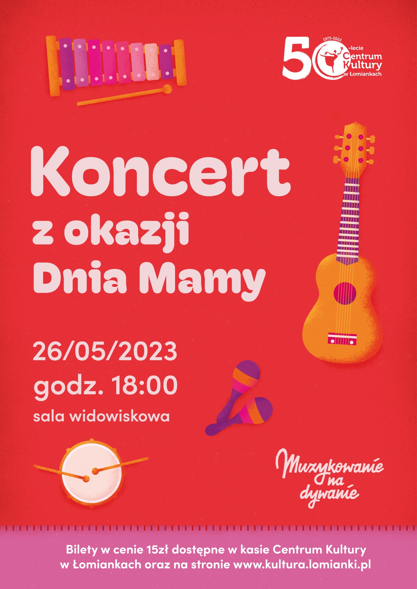 Artyści z projektu „Muzykowanie na dywanie” oraz Centrum Kultury w Łomiankach zapraszają na niepowtarzalny, interaktywny koncert z okazji Dnia Mamy.