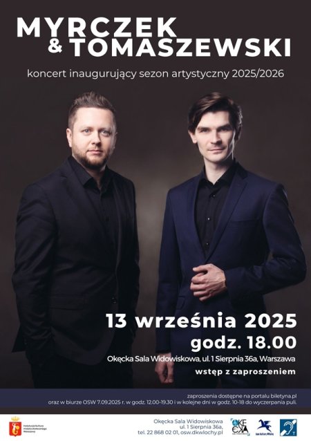 13 września o godz. 18.00 Okęcka Sala Widowiskowa zaprasza na koncert inaugurujący sezon artystyczny 2025/2026.