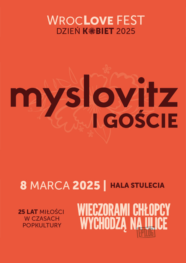 🎵MYSLOVITZ i Goście na Dzień Kobiet we Wrocławiu! 🎸 Finałowy koncert trasy 25 lat "Miłości w czasach popkultury". 🥳 Zapraszamy na specjalną edycję festiwalu WrocLove Fest z okazji Dnia Kobiet. 👉 Nie możesz tego przegapić! 😍