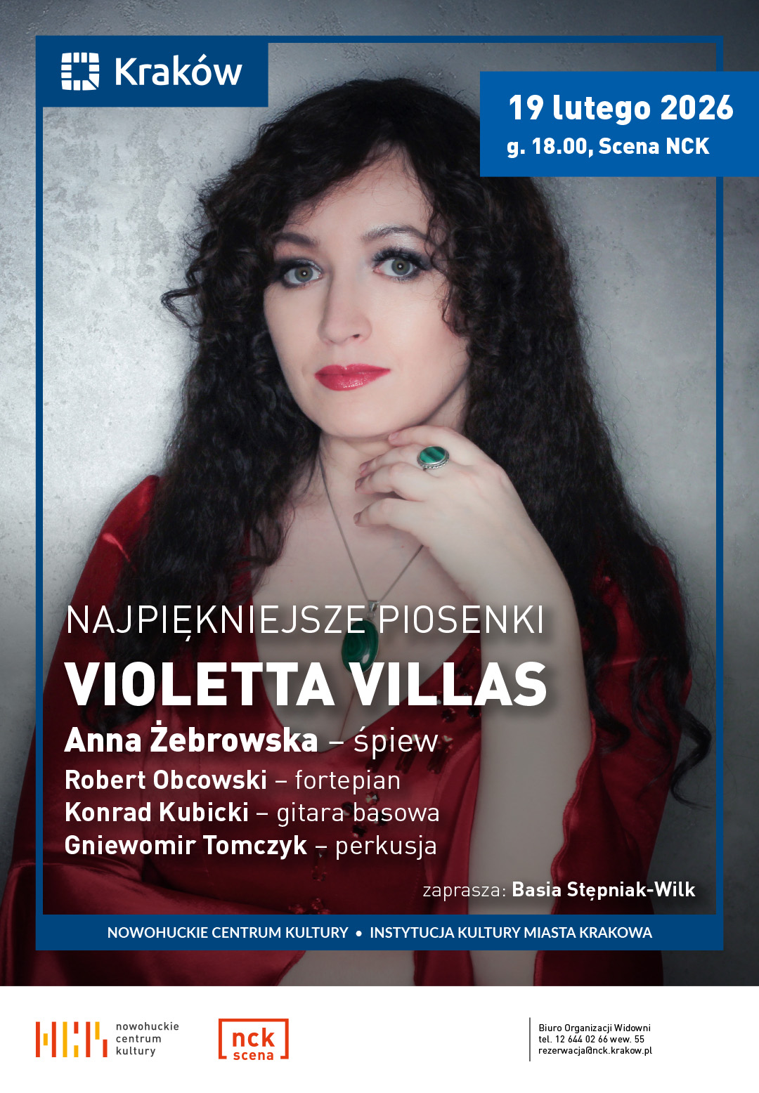 Program tego spotkania z cyklu Najpiękniejsze Piosenki wypełniony będzie pięknymi, znanymi i lubianymi piosenkami Violetty Villas - wybitnej artystki, określanej swego czasu mianem „głosu ery atomowej”. Koncert przygotowany został przez Annę Żebrowską, która swoją drogę artystyczną rozpoczęła w 1991 roku, a utworami Villas zetknęła się pod koniec lat 90. i to właśnie na tym repertuarze w dużej mierze rozwijała swój głos.