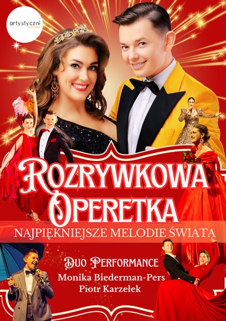 Zapraszamy na niezwykły koncert, który przeniesie Cię w świat najbardziej urzekających melodii! "Rozrywkowa operetka, czyli najpiękniejsze melodie świata..." to widowisko pełne emocji, w którym klasyka spotyka się z nowoczesnymi brzmieniami. Od porywających arii operetkowych przez niezapomniane utwory musicalowe, aż po kultowe przeboje filmowe – ten wieczór dostarczy Ci niezapomnianych wrażeń.