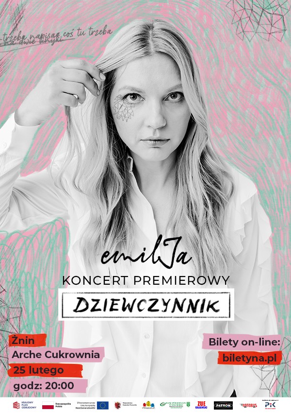 Już 25 lutego o godz. 20:00, w wyjątkowej postindustrialnejprzestrzeni Cukrowni Arche w Żninie, emilJai jej niezwykli muzyczni gościezagrają po raz pierwszyw pełnym składzie materiał z albumu DZIEWCZYNNIK.