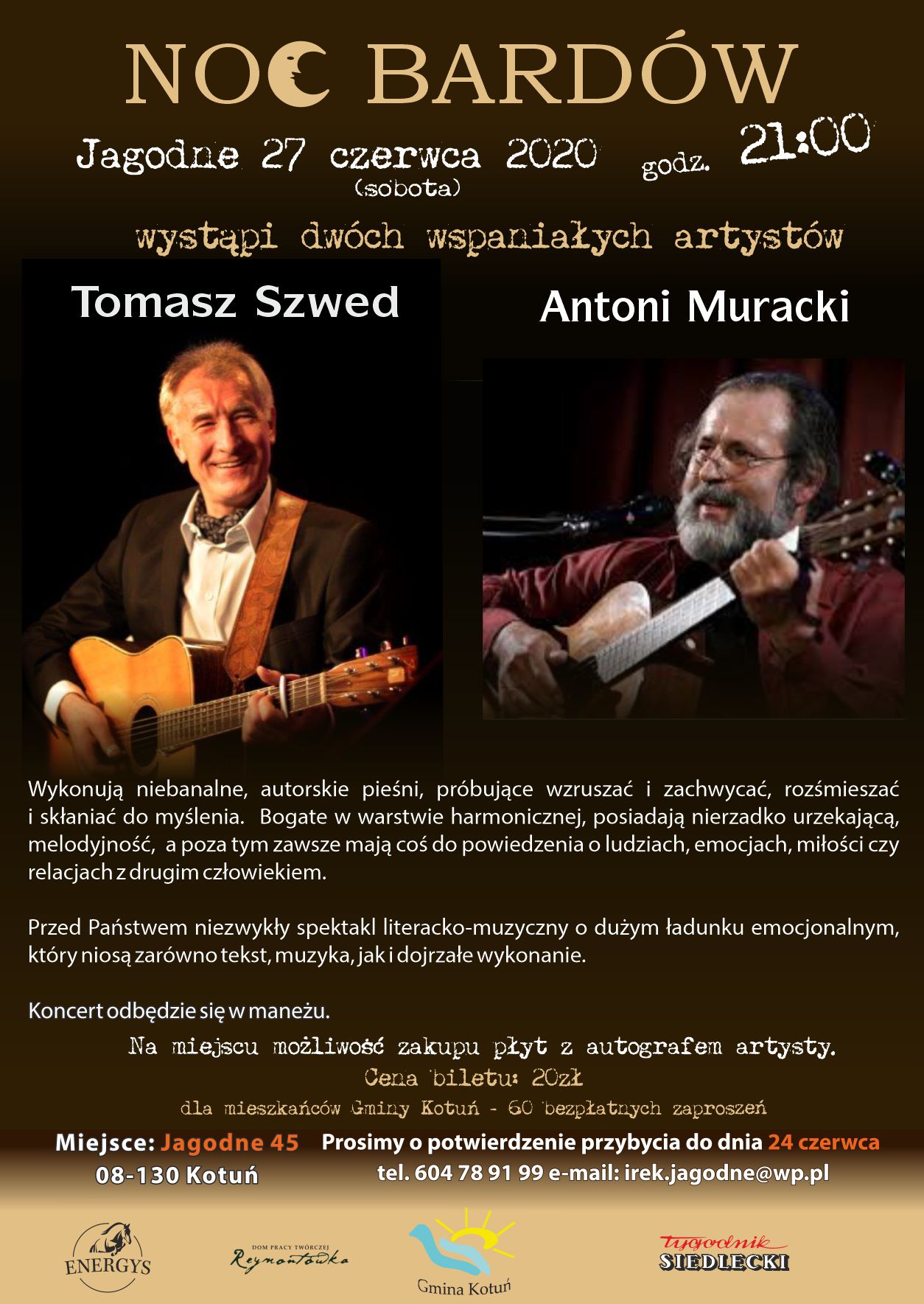 Recenzje i opinie: Noc Bardów. Występią Tomasz Szwed i Antoni Muracki