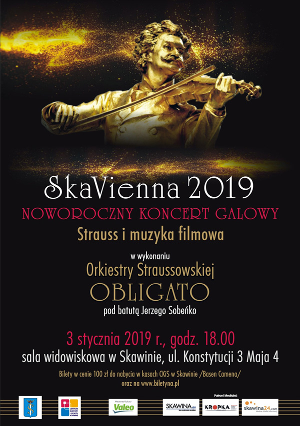 3 stycznia 2019 roku usłyszymy m. in. znane arie operowe, operetkowe, najpiękniejsze walce świata, a także przeboje muzyki filmowej w wykonaniu Orkiestry Straussowskiej OBLIGATO pod dyrekcją maestro Jerzego Sobeńko. Orkiestrze towarzyszyć będą znakomici soliści.
