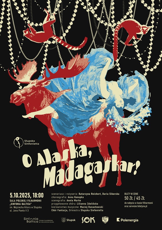 „O Alaska, Madagaskar ! ” – spektakl muzyczny przenoszący widzów w realia okresu międzywojennego, łączący elementy rozrywkowe i kabaretowe. Spektakl w reżyserii Katarzyny Reichert i Darii Sikorskiej, z udziałem Słupskiej Sinfonietty, chóru Fantazja, solistów, tancerzy i aktorów. Muzyczne klimaty lat 20. i 30. XX wieku, wieczór pełen humoru i nostalgii. Premiera odbędzie się 5 października o godzinie 18:00 w sali Polskiej Filharmonii Sinfonia Baltica im. W. Kilara w Słupsku.