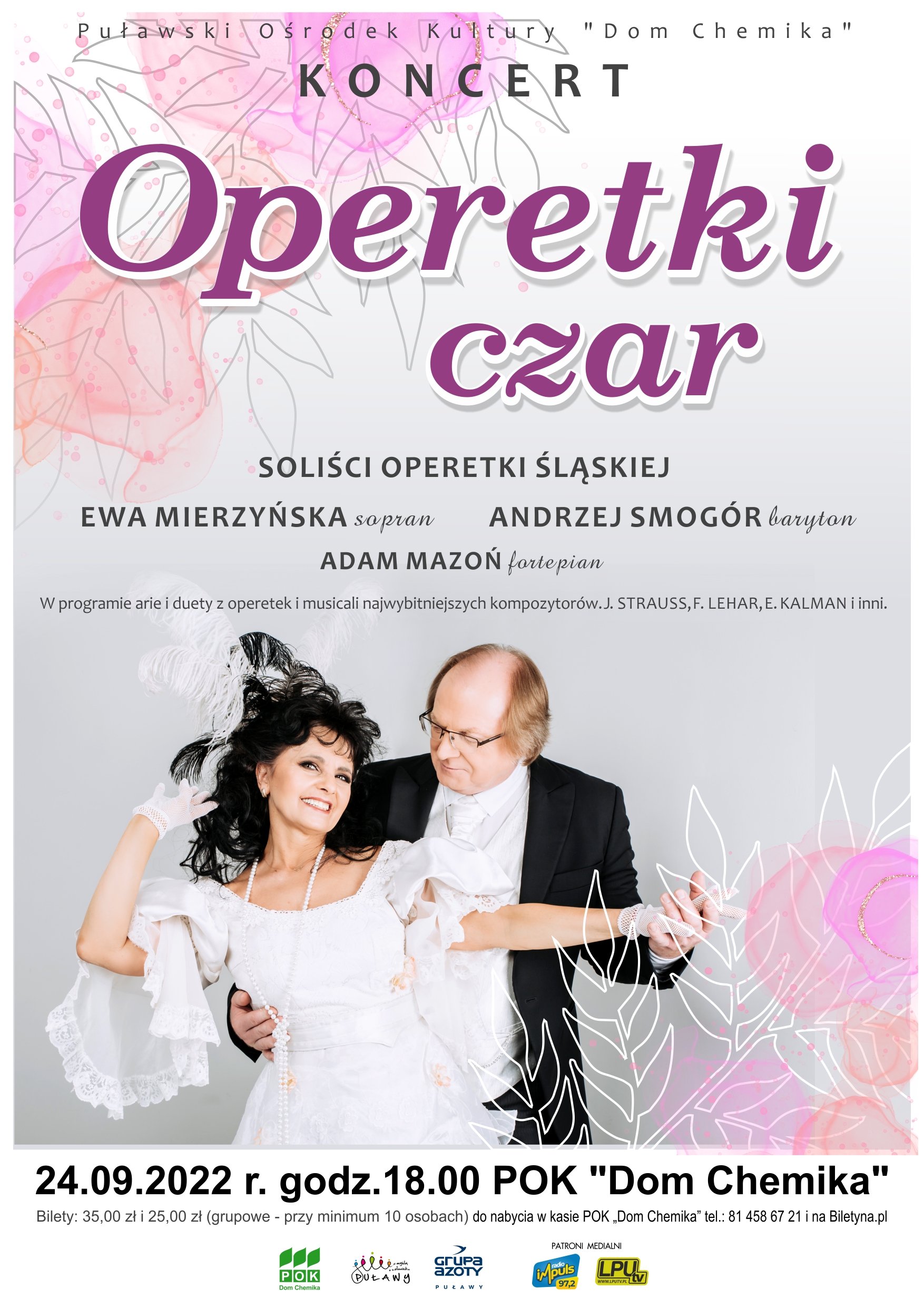 Na koncert „Operetki czar” zapraszamy 24 września 2022 r. o godz. 18.00 do sali widowiskowej POK ”Dom Chemika”.