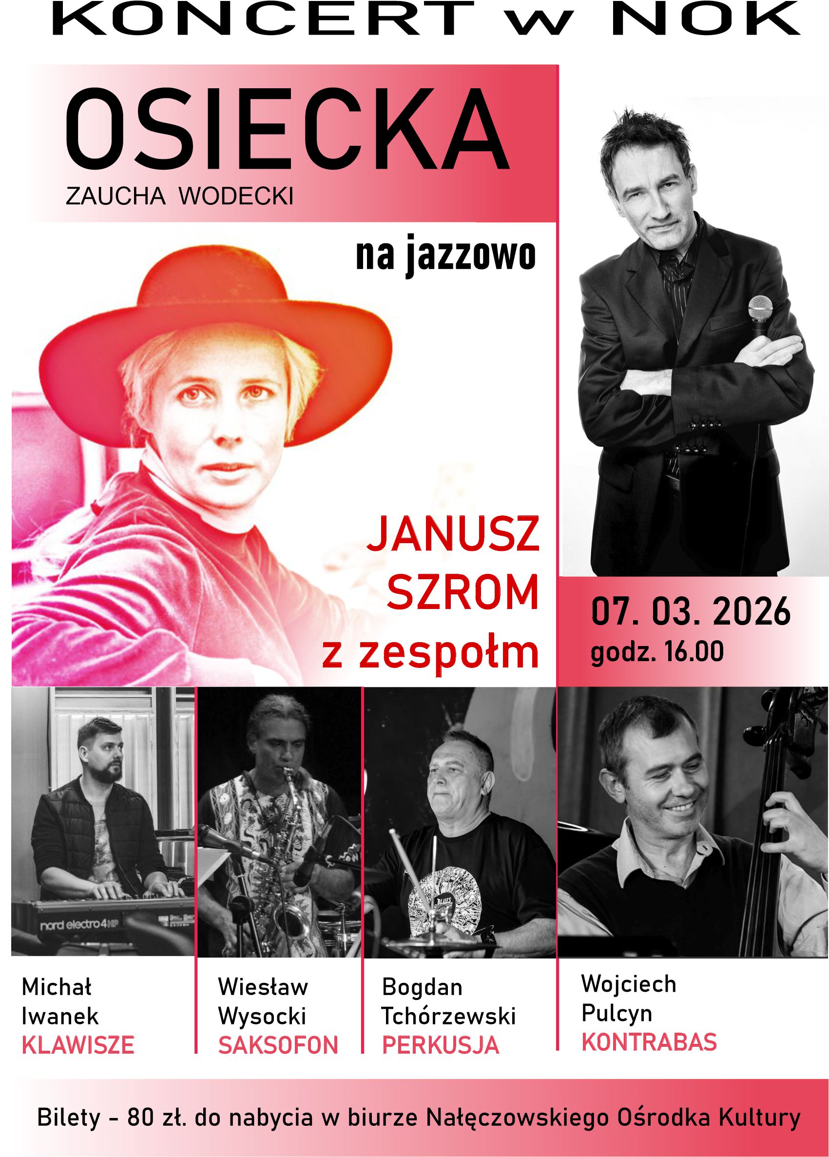Usłyszymy znane polskiej publiczności utwory m.in.: Miłość złe humory ma, Czas nas uczy pogody, Zielono mi, Ta ostatnia niedziela, które brawurowo wykona dla nas jeden z najbardziej rozpoznawalnych polskich wokali jazzowych – Janusz Szrom. Towarzyszyć mu będą wybitni instrumentaliści. Poczytajcie i przybywajcie do Nałęczowskiego Ośrodka Kultury. W przeddzień dnia kobiet ten wieczór będzie niezapomnianym prezentem dla Waszych Miłości. Zapraszamy