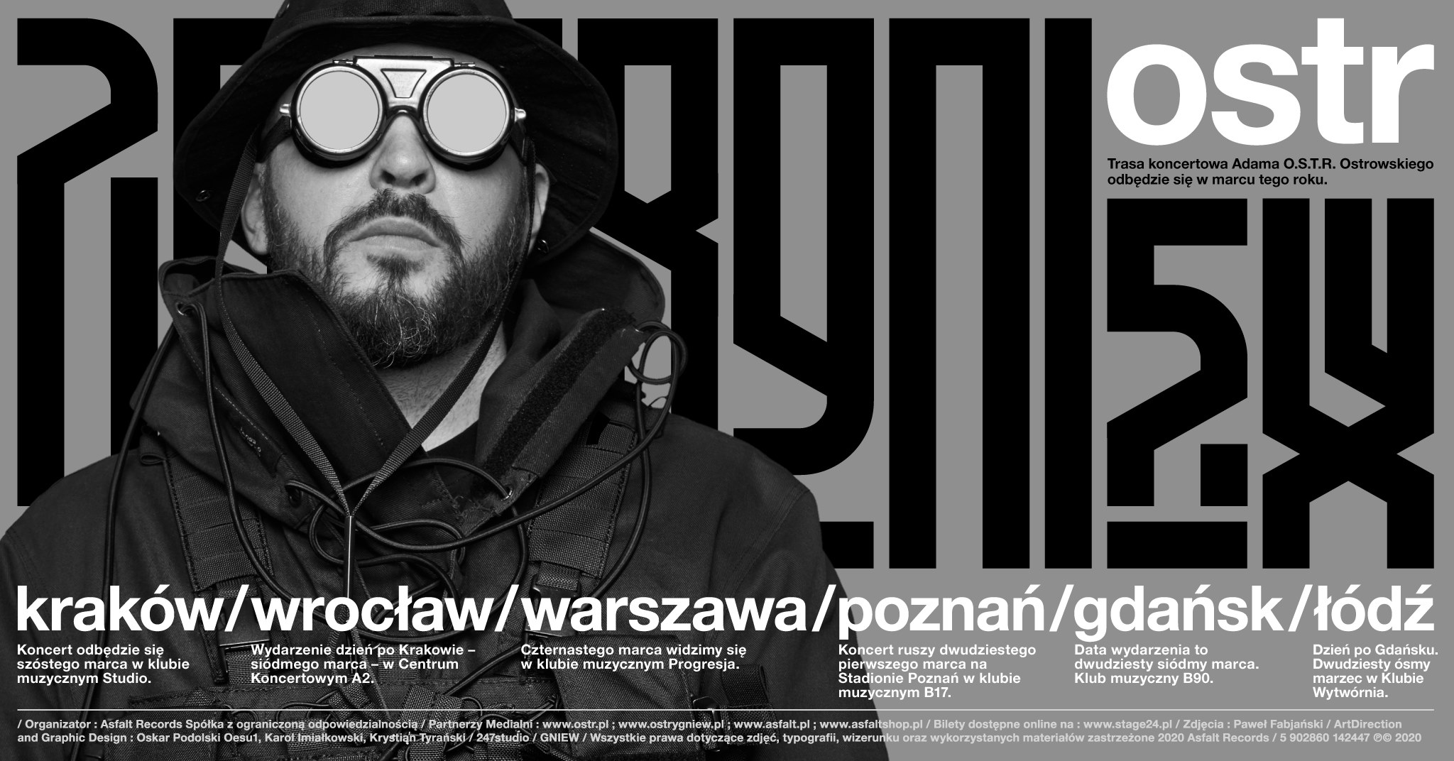 i za granicą! Nie istnieje siła, która powstrzymałaby Ostrego przed tegoroczną trasą koncertową po premierze albumu GNIEW! Nowa trasa to przede wszystkim duża dawka materiału z najnowszej płyty GNIEW, ale rzecz jasna nie zabraknie także najpopularniejszych numerów z owocnej dyskografii O.S.T.R. Za oprawę muzyczno - wizualną odpowiada najlepszy w swoim fachu - DJ Haem.