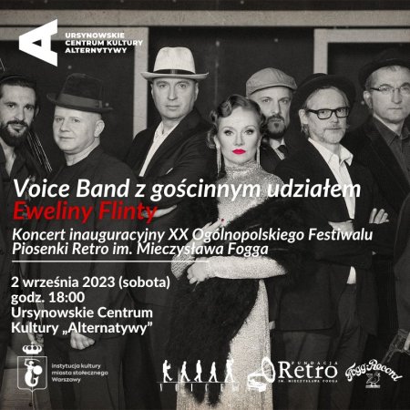 W tym roku Ogólnopolski Festiwal Piosenki Retro im. Mieczysława Fogga już po raz dwudziesty zagości na estradach całego kraju. Przez cały wrzesień odbywać się będą koncerty, projekcje filmowe, spotkania i wystawy w klimacie lat 20. i 30. XX wieku. Festiwal rozpocznie się w „Alternatywach” występem fenomenalnych, rodzimych rewelersów z… gościem specjalnym. Kto z Was nie zdążył na ostatni koncert Chóru Dana, bo za późno się urodził? Nic straconego! Jedyny w Polsce męski kwartet wokalny brawurowo śpiewa tamten wspaniały repertuar. To właśnie zespół Voice Band zabierze Was w cudowną podróż muzyczną do warszawskich rewii, kabaretów i filmów dwudziestolecia międzywojennego. Dołączy do nich, w swej najnowszej odsłonie, sama Ewelina Flinta!