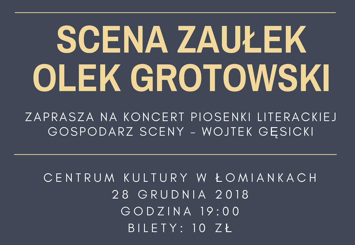 Świąteczno-noworoczne spotkanie z cyklu Scena Zaułek już 28 grudnia 2018 r. Gościem Wojtek Gęsicki, będzie znany i lubiany bard Olek Grotowski.