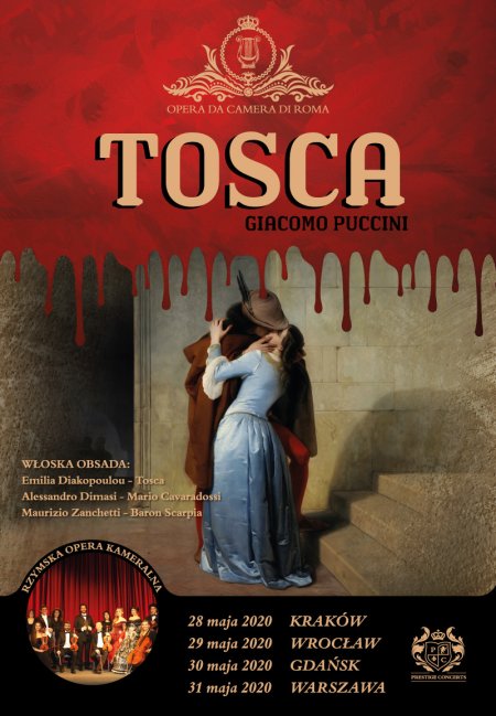 Fragmenty pery Tosca zostaną zaprezentowane w trzech aktach, przez włoskich solistów oraz zespół instrumentalny z Rzymskiej Opery Kameralnej. Tegoroczne kameralne koncerty operowe zagoszczą w niecodziennych wnętrzach, charakteryzujących się nieprawdopodobną akustyką i klimatem.