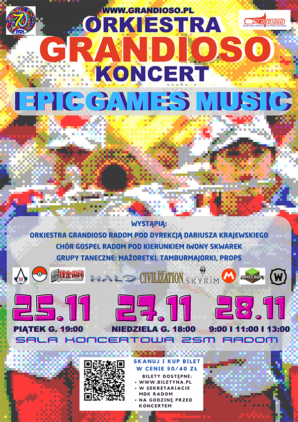 W programie koncertu duża porcja epickiej muzyki z gier video: Skyrim, Assasin’s Creed III, Civilization, Minecraft, Pokemon, Halo, Super Mario, Shifter, World of Warcraft, Brothers - Fullmetal Alchemist a także przeboje musicalu West Side Story.