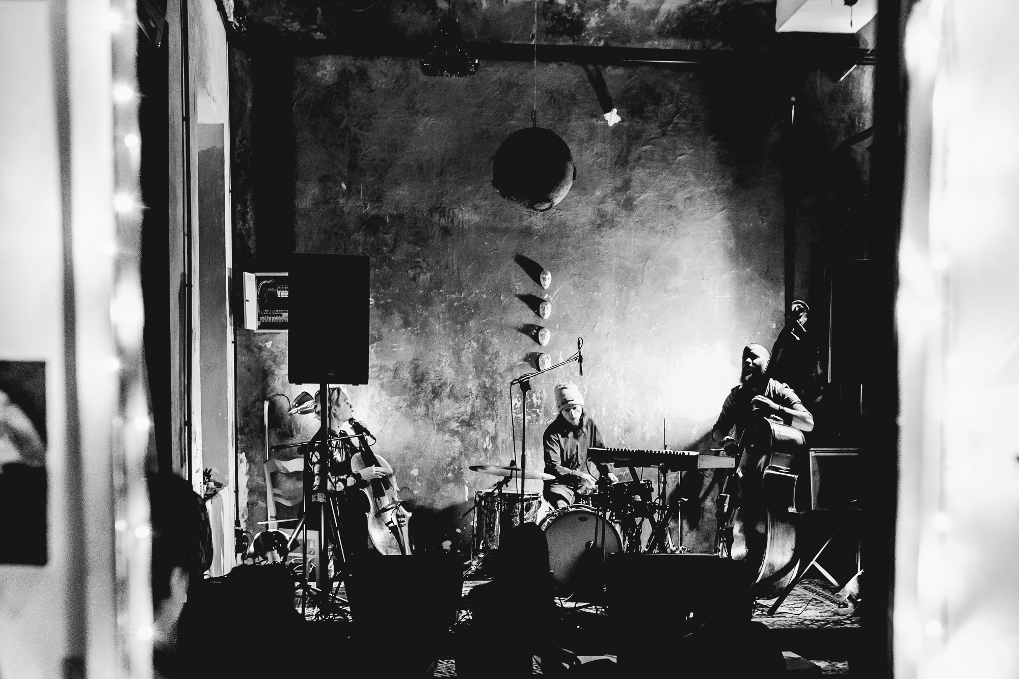 Drewno, drewno, drewno, głos i synthy. Trio, które transowe utwory miesza z rozbudowanymi suitami. Przemieszczamy się od jazz folku, przez trip hop, piosenkę aktorską, klasykę, aż po awangardę. Punktem wyjścia jest improwizacja, z której to powoli wyłaniają się i kształtują wielowątkowe kompozycje na dwa smyczki, groove, sonoryzm, szepty, jazgot i kilka mądrych słów.