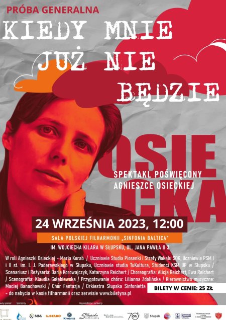 Serdecznie zapraszamy na próbę generalną do wyjątkowego spektaklu muzyczno-tanecznego pt. "Kiedy mnie już nie będzie", poświęconego nieśmiertelnej twórczości Agnieszki Osieckiej.