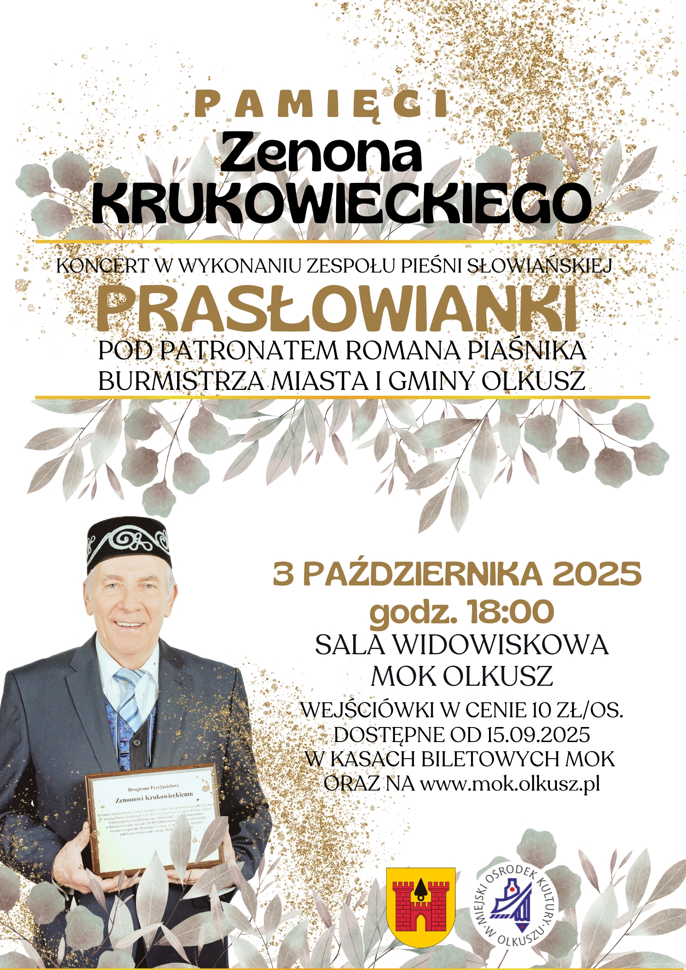 Bilety w cenie 10 zł/os. dostępne od 15 września 2025 r. w kasach MOK oraz online na stronie www.mok.olkusz.pl.