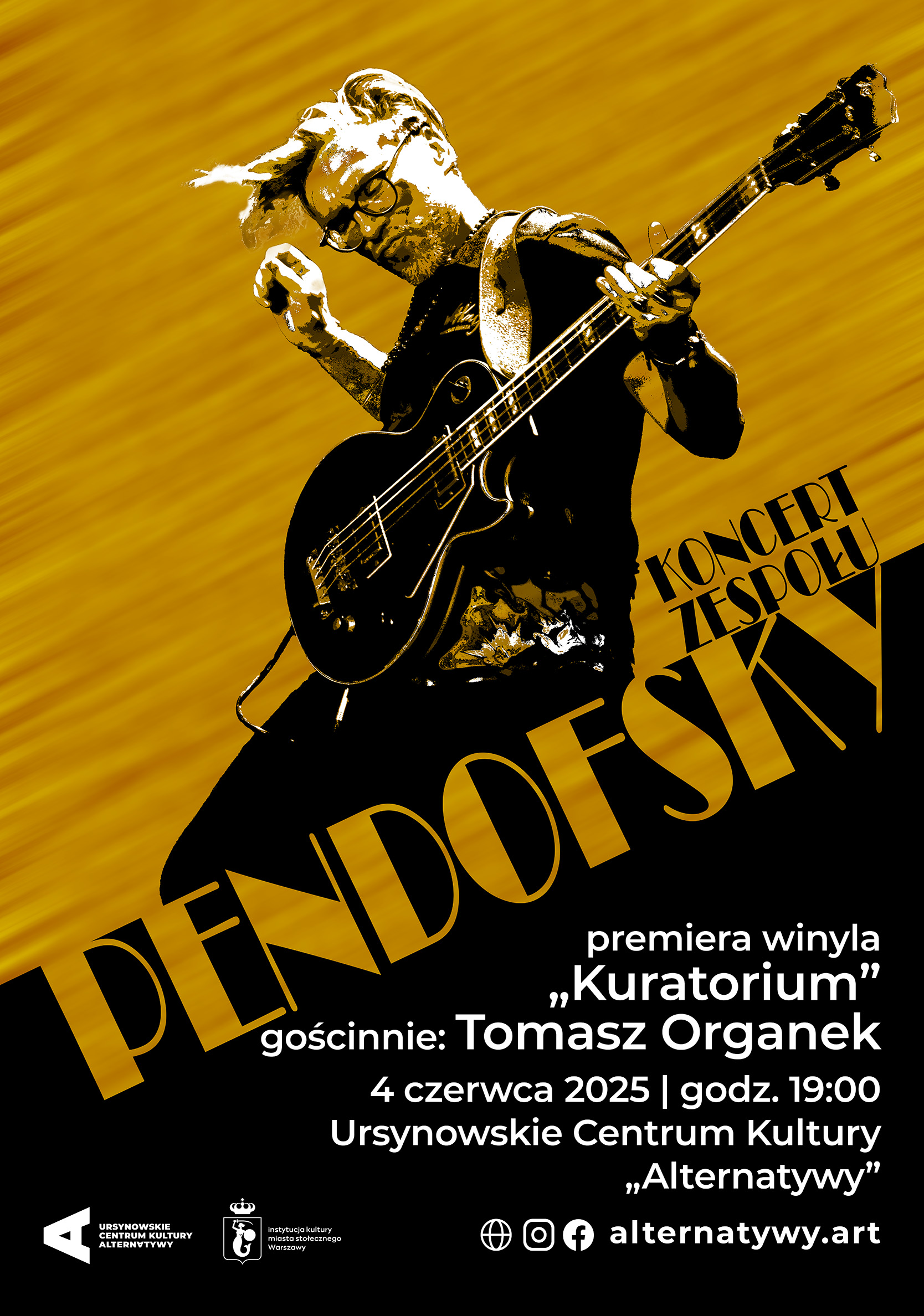 Koncert zespołu Pendofsky. Usłyszymy premierowe wykonanie najnowszego albumu Marcina Pendowskiego. Wybitny basista i wokalista zapewni publiczności prawdziwą muzyczną ucztę. Jego trzecia płyta, „Kuratorium”, stanowi kontynuację wcześniejszych albumów – „Pendofskiego” (2015), nagrodzonego Mateuszem Trójki za Najlepszy Jazzowy Debiut Roku, oraz „Gumolitu” (2020). Gościem specjalnym koncertu będzie Tomasz Organek, który zaśpiewał utwór „Kilka pytań o wolność” na albumie „Gumolit” i wykona go również na scenie. Marcin Pendowski porusza się w stylistyce jazzu, afrobeatu i bluesa. Na swoim koncie ma współpracę przy ponad 60 krążkach z artystami takimi jak Fisz Emade Tworzywo, Albo Inaczej, Kuba Stankiewicz, The Positive czy Artrosis. Po koncercie będzie można kupić premierowy winyl „Kuratorium” oraz zdobyć autograf artysty.