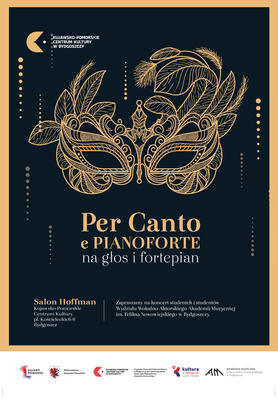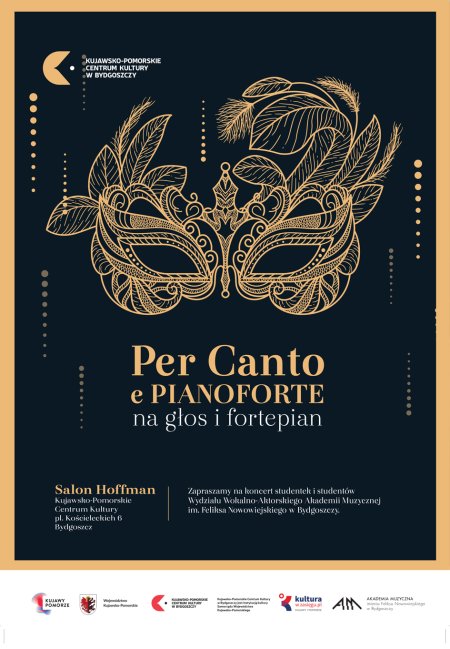 Per canto e pianoforte to cykl koncertów powstały we współpracy z Akademią Muzyczną im. Feliksa Nowowiejskiego w Bydgoszczy. W ramach cyklu występują Studentki i Studenci Wydziału Wokalno-Aktorskiego. Podczas koncertu usłyszeć można zarówno arie z oper i operetek, ale też inne utwory z klasycznego repertuaru wokalnego zarówno tych najbardziej znanych, jak i mniej popularnych kompozytorów. Wydarzenie ma na celu umożliwienie młodym adeptom sztuki wokalnej zaprezentowania efektów swojej nauki przed szerszą publicznością. Marcowy koncert poświęcony będzie celebrowaniu Dnia Kobiet – studenci zaprezentują arie z oper W.A. Mozarta i V. Belliniego, arie z operetek I. Kálmána i K. Zellera, przeboje musicalowe, pieśni S. Moniuszki, P. Czajkowskiego, M. Karłowicza i R. Straussa oraz piosenki m.in. z repertuaru Kabaretu Starszych Panów.