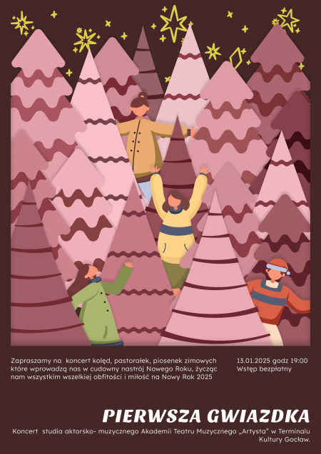 Serdecznie zapraszamy na koncert studia aktorsko-muzycznego Akademii Teatru Muzycznego „Artysta" w Terminalu Kultury Gocław pt. Pierwsza Gwiazdka.